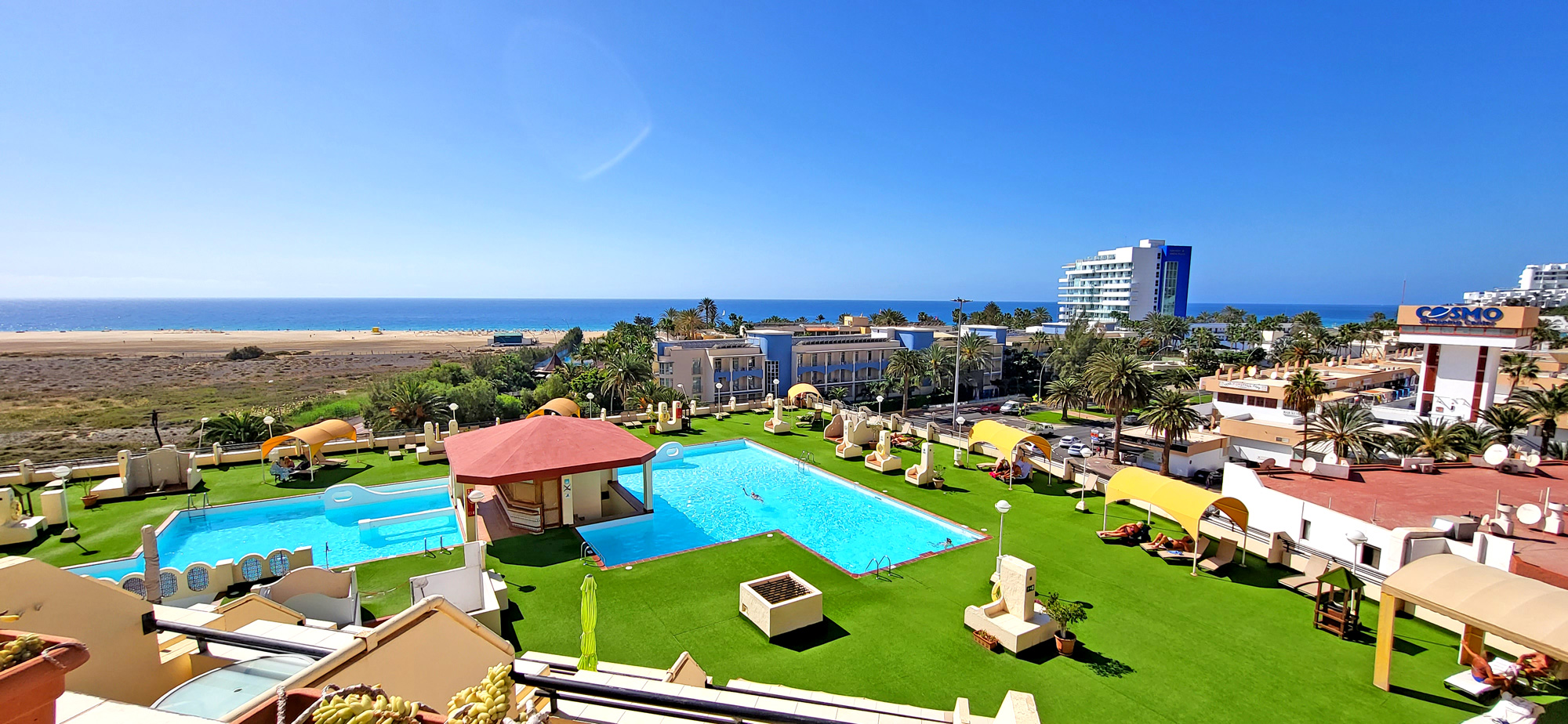 Debido a que la vivienda está en el sexto piso, tiene una vista impresionante de Jandía, la playa y el océano.